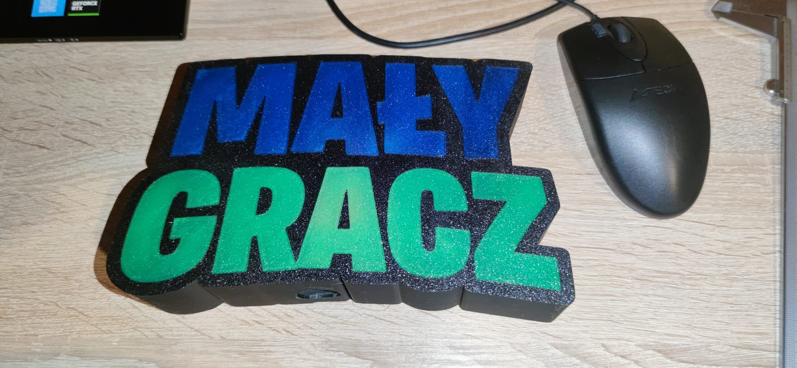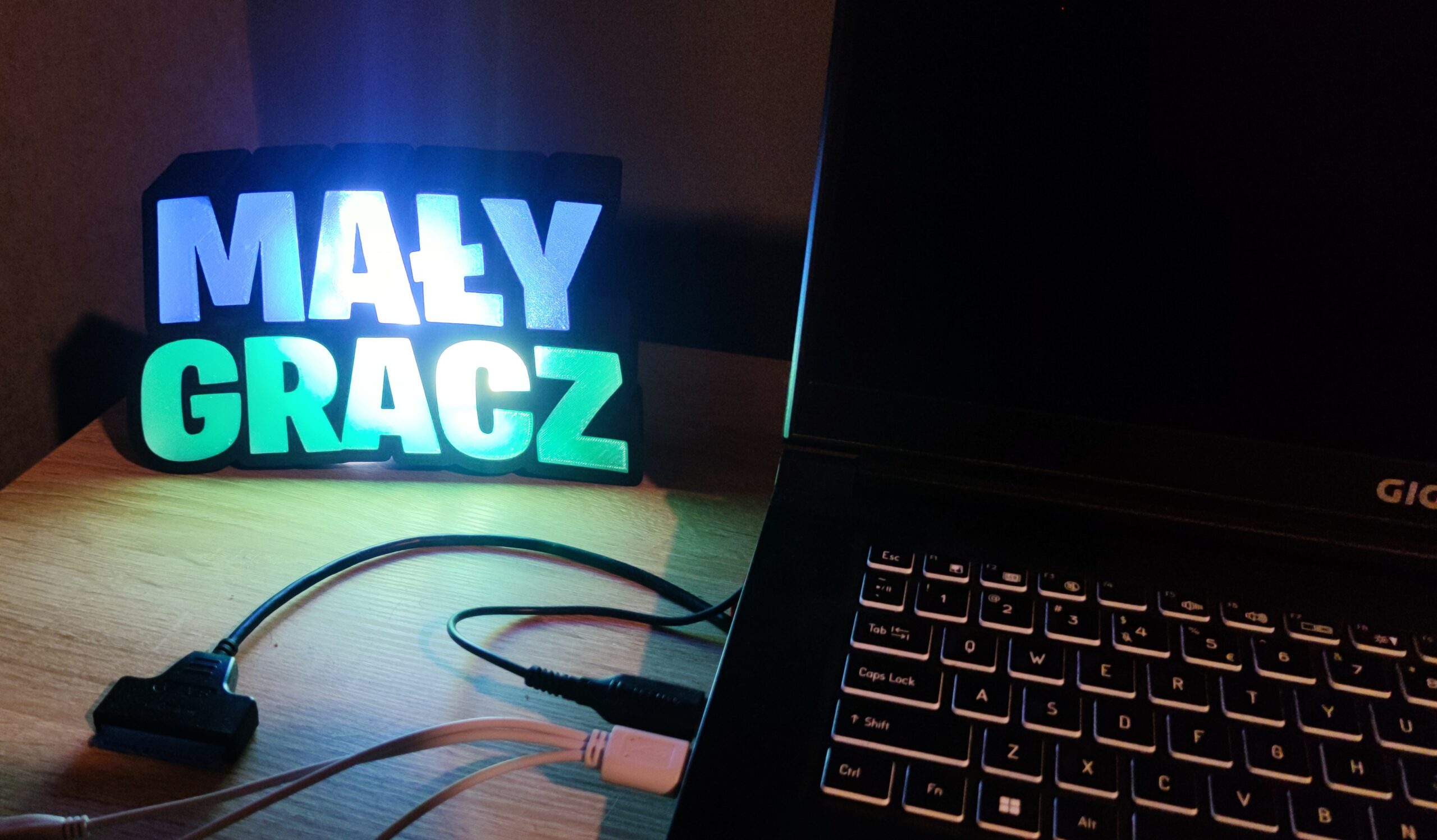 Lampka Mały Gracz, LED w zestawie. Zasilanie na baterie AAA x 3. Rozmiar ~ : 20,5 x 12 x 4,5 cm Możliwość zamówienia innego napisu, np. Imię w podobnym rozmiarze.